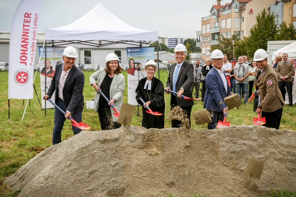 Mit einem symbolischen Spatenstich durch den Rosenheimer Landrat, Wasserburgs Bürgermeister und weiteren Unterstützerinnen und Unterstützern starteten die Johanniter am 13 September nicht nur die Bauphase, sondern vor allem die Spendenkampagne für das Johanniter-Zentrum Oberbayern Südost. Denn um den insgesamt rund 4,8 Millionen Euro teuren Bau bis Ende 2024 vollenden zu können, benötigen die Helferinnen und Helfer rund 3,2 Millionen Euro Spenden.
