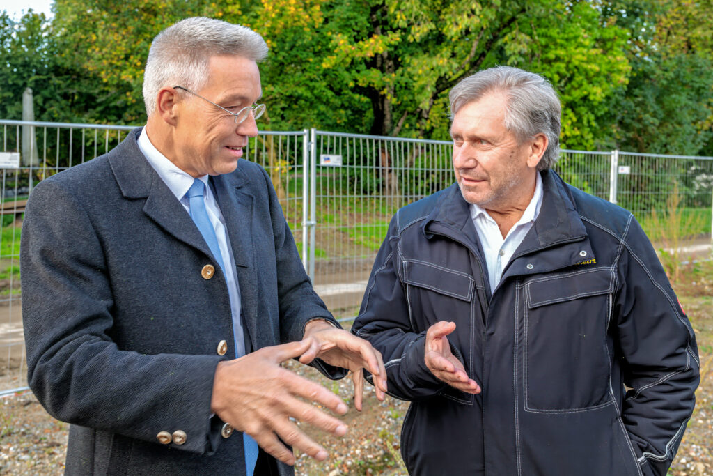 Als Vertreter der Eigentümerfamilie sprach Michael Schnitzenbaumer, der zugleich die Koordination der Tiefbauarbeiten übernimmt. Er dankte den vielen Beteiligten, die in den vergangenen Jahren im Hintergrund mitgewirkt hatten – insbesondere Bauamtsleiterin Beate Bergmann, Angelika Kästner aus dem Bürgermeisterbüro, Ersten Bürgermeister Schneider und Zweiten Bürgermeister Wolfgang Sattelberger. Anerkennung sprach er auch dem Städtebauplaner Max Wüstinger für die konzeptionelle Arbeit aus.