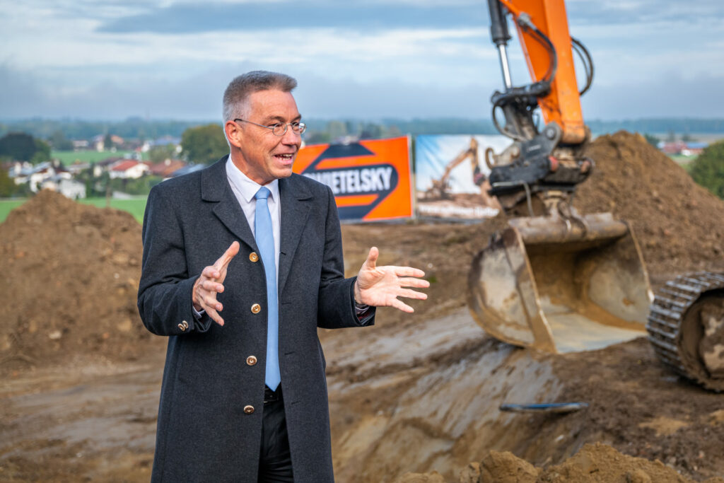 Landrat Otto Lederer spricht über die Bedeutung des Gewerbegebietes für den Landkreis Rosenheim