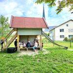 Die Kinder waren darüber natürlich sehr traurig, doch rasch kehrten wieder Glück und Freude für die jungen Dirndl und Buam sowie für die Leitung der Einrichtung ein. Denn Markus Stocker von der örtlichen Zimmerei Stocker bot sich an, für den Kindergarten einen Spielturm mit Rutschbahn und Sandkasten zu bauen und diesen dann zu spenden. Sogar um den Transport der Rutsche aus Frasdorf kümmerte sich die Firma. Sofort nach dem Aufbau erfolgte die sicherheitstechnische Abnahme des Spielgerätes und rasch nahmen die Kinder das Spielhaus mit strahlenden Augen in Beschlag. Schon in der Zeit der Mallersdorfer Schwestern, die den Kindergarten jahrelang geleitet haben, hat die Firma Stocker dem Kindergarten mehrere Spielgeräte gespendet.