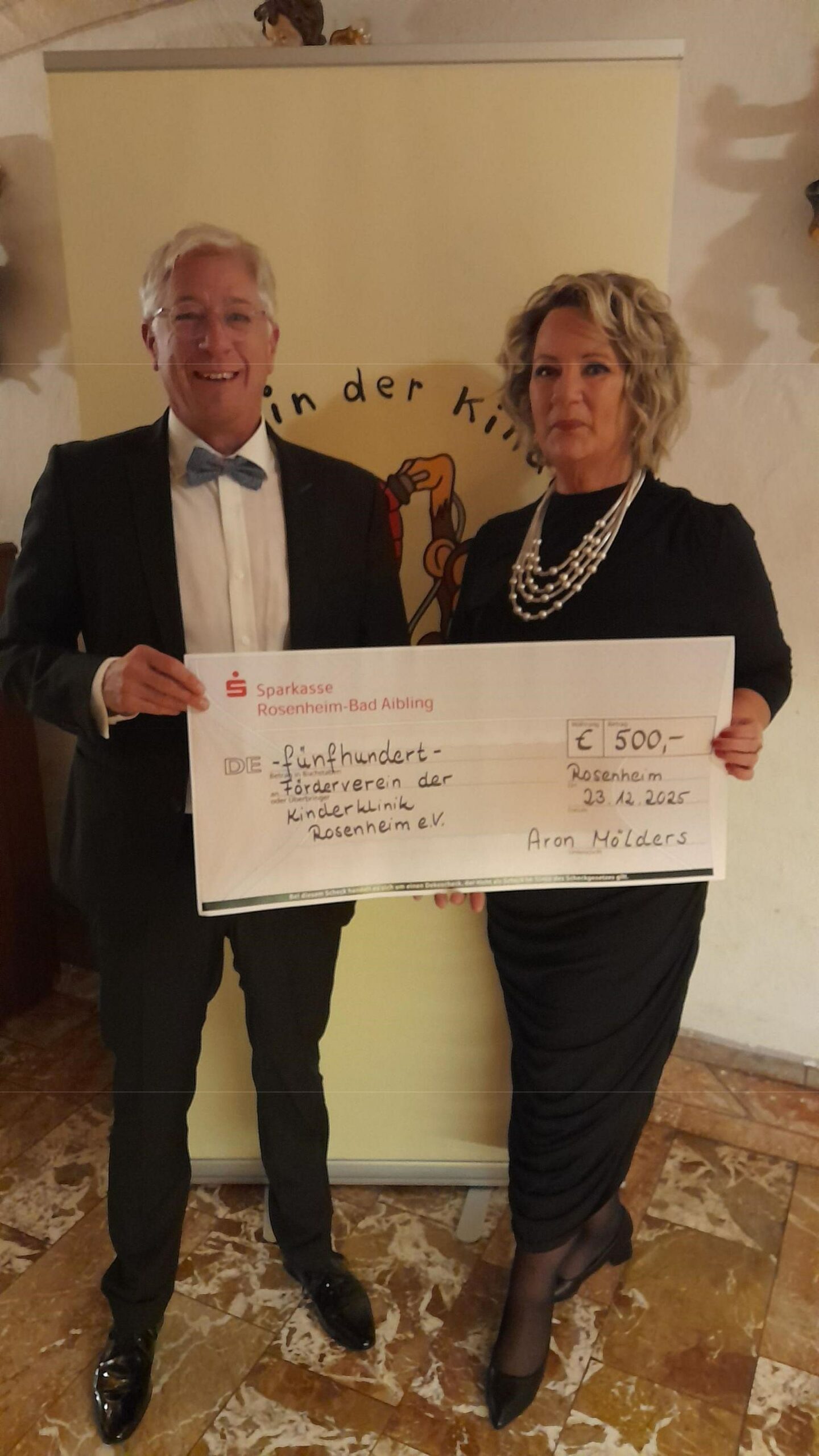 links: Aron Mölders; rechts: Mihaela Hammer, Vorsitzende des Fördervereins der Kinderklinik Rosenheim e.V.