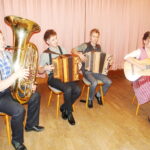 Evi und Andreas Hell waren tief berührt angesichts der ganzen Aktion und waren überwältigt, als Martina Gaukler die bislang eingegangenen Spenden erwähnte. Dies waren von Trachtenvereinen 11.860 Euro (Amerang, Marquartstein, Frasdorf, Atzing, Wildenwart, Hittenkirchen, Hohenaschau und Grabenstätt), dazu brachte an diesem Abend noch der Trachtenverein Rottau von seiner Klöpfelaktion sowie vom Marmeladenverkauf im Dorfladen einen Betrag von 3.790 Euro mit, desweiteren gab es aufgrund des Trachtler-Aufrufes noch viele Einzelspenden. „Das sind bis dato 24.339,60 Euro, das Eure notwendigen Baumaßnahmen und das Leben leichter machen sollen“. „Bin froh, ein Trachtler zu sein, habe die Jugendleitung in unserem Verein immer gerne gemacht“ – mit diesen Worten dankte Andreas Hell seinem Staudacher Verein, der Bürgermeisterin und den Vertretern der Trachtenvereine, die bislang geholfen haben. Ein weiterer Dank galt all jenen Leuten, die sich beim Organisieren der Spenden und bei den Klöpfelgehen-Aktionen mit eingebracht haben sowie den vier jungen Musikanten aus den Reihen der Staudacher Aktiven, die als „Haudi-Zuawa-Musi“ dem besonderen Abend auch noch ein passendes musikalisches Gepräge gaben – natürlich ohne Gage zu verlangen.