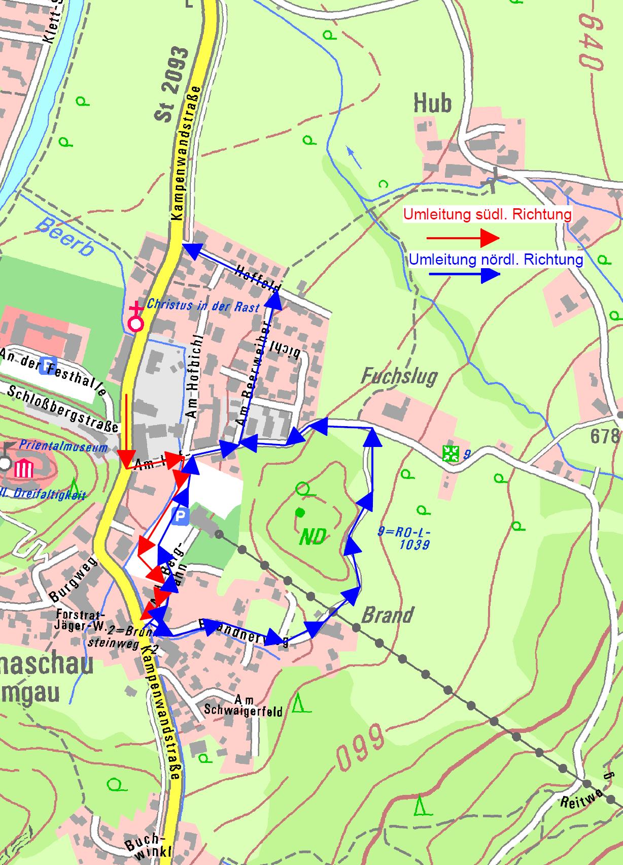 In der Zeit vom 1. April bis 26. April wird die Kampenwandstraße vom Abzweig Am Hofbichl bis Abzweig Burgweg komplett gesperrt. Die Umleitung erfolgt in südlicher Richtung über Am Hofbichl und Parkplatz Kampenwandseilbahn, in nördlicher Richtung 1. bis 5. April über den Parkplatz Kampenwandseilbahn bzw. vom 6. bis zum 26. April Brandnerweg, Fuchslug, Am Hofbichl, Am Beerweiher und Hoffeld – jeweils als Einbahnstraße. Die Gemeindeverwaltung bittet die angebrachte Beschilderung zu beachten. Bürgermeister Peter Solnar erklärt, dass die Gemeinde wegen der komplexen Sachlage intensive Vorbesprechungen mit den Fachstellen wie Landratsamt, Straßenbauamt, Busunternahmen, Baufirma und Polizei geführt hat und viele Gesichtspunkte zu berücksichtigen waren und sind. Andere Alternativen waren nicht durchführbar.