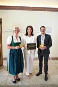 Staatsministerin Michaela Kaniber gemeinsam mit Angela Inselkammer (DEHOGA Bayern-Präsidentin, 1.v.l.), Wolfgang Wagner (Prokurist und Bereichsleiter Strategische Entwicklung der BayTM) im Tourismusministerium in München.