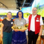 Fotos: Hötzelsperger –   Besuch mit Gurken in der Bayernhalle – 1. von  links: Spreewaldverein-Geschäftsführerin Melanie Kossatz, Anton Hötzelsperger von der Bayernhalle, Kahnfährfrau Antje Krischok und Entenwirt Peter Schrödl.