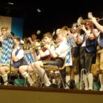 Erster Höhepunkt des Abends waren sauber gespielte Weisen der Priener Jugendblaskapelle unter der Leitung von Regina Stephan sowie die Stücke „Viva la Vida“ und „Berglandkinder-Marsch“, den die Jung- und Alt-Musikanten gemeinsam mit Dirigentin Regina Huber intonierten und dabei über die Akustik hinaus ein wunderbares Bühnenbild für das Auge präsentierten. Der folgende Anstich des Fasses mit Dunklem Starkbierbock vom Hofbräuhaus Traunstein ging ganz und gar nicht ins Auge. Ganz im Gegenteil: Priens Bürgermeister Andreas Friedrich schaffte mit zwei kräftigen, sicheren Schlägen den Bierfluß, mit einem halben Sicherheitsschlag war auch den letzten Tropfen vom Faß das unnötige Verlassen verwehrt. Am ersten Prosit zu den Klängen der Priener Blaskapelle erfreuten sich mit dem Bürgermeister noch Verkaufsleiter Rudi Lutz vom Hofbräuhaus Traunstein, Dirigentin Regina Huber, Musikvorstand Stefan Hackenberg und Felix Löhmann, der zusammen mit seinem Luitpold-am-See-Team für die gastronomische Versorgung gut vorbereitet war. Dem Anzapfen folgten der Bayerische Defiliermarsch und weitere Unterhaltungsmusik mit Ansagen von Sebastian Strohmayer ehe sich der Saal verdunkelte und sich die Fastenpredigt ankündigte.