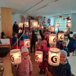 Gruppenintern wurde die Geschichte von St. Martin erzählt, gemeinsam Martinslieder gesungen und jedes Kind durfte im abgedunkeltem Gruppenraum ein kleines Martinslicht entzünden. Dann zogen die Kinder und Erzieher innerhalb ihrer Gruppe mit ihren selbstgebastelten bunten Laternen singend vom Katholischen Kindergarten zur Pfarrkirche “Mariä Himmelfahrt”. In der Kirche sangen die Kinder Martinslieder bevor sie wieder zurück zum Kindergarten zogen.