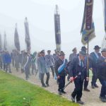 Zur traditionellen Kranzniederlegung sprachen die Vorsitzenden der KSK Kammer und Haslach. Robert Maier aus Kammer sagte dabei: „Seit 77 Jahren dürfen wir seit dem Ende des Zweiten Weltkriegs mit 60 Millionen Toten in diesem Frieden leben, hören wir auf die letzten Zeitzeugen, die von den Greueltaten berichten können, hören wir ihnen zu, dass diese schrecklichen Taten nicht mehr wiederkehren dürfen“. Und Simon Schreiber aus Haslach sagte: „In diesem Moment, an dem wir im paradiesischen Chiemgau auf der Kampenwand stehen dürfen, gibt es weltweit 29 Kriege, 7 davon sind bewaffnete Kriege. In den vergangenen Jahren und Jahrzehnten waren wir nur bedingt betroffen, denn diese Auseinandersetzungen fanden in Südamerika, Afrika oder Indien in weiter Ferne statt. Aber mit den Konflikten im Irak, Syrien und Afghanistan und spätestens mit dem Angriff Russlands auf die Ukraine ist der Krieg buchstäblich vor der Haustüre. Einschränkungen sind spürbar und machen Sorgen“. Die Kranzniederlegung als äußeres Zeichen der Trauer und der Verbundenheit mit den Toten erfolgte durch Pius Graf, dem ersten Obmann der Soldaten- und Veteranen-Interessengemeinschaft Rosenheim sowie durch Anton Linner, dem zweiten Gauvorstand des Chiem- und Rupertigaus. Linner dankte abschließend und vor dem geordneten Rückmarsch zur Steinlingalm der Stadt Traunstein, den Gemeinden Aschau und Höslwang, Dekan Mannhardt und den KSK Kammer und Haslach sowie vielen ehrenamtlichen Kräften, die zur Würde und Schönheit des Gottesdienstes beigetragen haben.