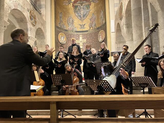 Unter der Leitung von Prof. Jörn Andresen singen und musizieren das Mozarteum vocalEnsemble und die Capella dell’halla.