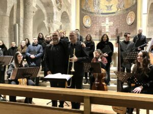 Stürmischer Applaus nach einem berührenden Stadtrequiem mit Kompositionen zum Sterben und Trauern, mit Hoffnung auf die Auferstehung unter der Leitung von Prof. Jörn Andresen (links) und mit dem Barockposaunisten Robert Schlegl aus Bad Reichenhall