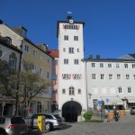 Einen Stadtrundgang zu historischen Plätzen und Sehenswürdigkeiten der Innenstadt starten wir am Parkplatz Karl-Theodor-Platz, wo wir auch gleich in die Salinenkapelle St. Rupert und Maximilian hineinschauen können. Auf dem Weg zum Salzmaierstiege kommen wir vorbei am Marienstock, ehemaligen Wohnungen der Saliner. Die Stiege, die früher der Verbindungsweg zwischen dem Salzmaieramt und der Saline war, braucht man heute nicht mehr hinaufsteigen, es gibt jetzt einen Aufzug. Wir steigen die Stiege hinauf und oben angekommen spazieren wir durch die Fuchsgrube und die Hofgasse zum Stadtplatz und wenden uns nach rechts, um den Jacklturm (neu erbaut 1998, nachdem er dem Stadtbrand 1851 zum Opfer gefallen war) zu bewundern.
