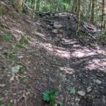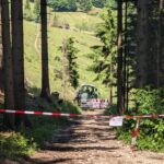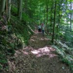 Was tun? Der Steig hinauf zur Staffnalm ist steil und rutschig und mit dem kaputten Bergstiefel nicht zu machen. Zurück zum Strehtrumpf ist für uns auch keine Option, aber da naht ein Auto – ein Mitarbeiter der Rachlhofchefin. Er bietet uns an, uns nach Marquartstein mitzunehmen. Aber was sollen wir in Marquartstein, unser Auto steht am Strehtrumpf. Ich schlage vor, dass meine beiden Begleiter mit dem Auto hinunter bis zur Talstation der Plattenbahn fahren und mit dieser hinauf auf die Staffnalm, wo wir uns wieder treffen, um dort einzukehren. Ich würde alleine zur Staffnalm hinaufsteigen und könnte dann von dort zurück zum Strehtrumpf marschieren und das Auto holen. Auch andere Almwanderer sind inzwischen da und ärgern sich, weil am Wanderparkplatz kein Hinweis auf die Sperrung angebracht war. Zwei Mountainbiker verstecken ihre Räder im Wald und setzen ihren Weg zu Fuss auf dem Pfad zur Staffnalm fort. Mein Vorschlag wird angenommen und ich folge den beiden, die aber bald außer Sicht sind., bin aber gleichzeitig an der Bergstation der Plattenbahn wie meine Begleiter.