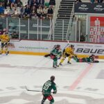 Zufälle und vor allem Stock-, Abspiel- und Stellungsfehler hatten im ersten Spielabschnitt – auf beiden Seiten – Hochkonjunktur. Herausgespielt waren nur die wenigsten der zahlreichen Torchancen. Als Manuel Strodel den DEL-erfahrenen Jon Matsumoto aus dem Stand überlief und quer in den Torraum legte, schob Bastian Eckl aus kurzer Distanz zur erneuten Rosenheimer Führung ein (14.). Diese hätte sogar höher ausfallen können, denn bei einem feinen Schuss von Reid Duke rettete der Pfosten für den bereits geschlagenen Gästetorwart. Auf der anderen Seite verhinderte der zuverlässige Pöpperle einige Male den möglichen Ausgleichstreffer, der aber kurz nach der ersten Pause fiel: Der schussgewaltige US-Amerikaner Erik Gotz nahm von der blauen Linie Maß, „Goldhelm“ Matsumoto fälschte minimal aber effektiv ab – 2:2 (23.).