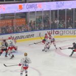Rosenheims Defensive – der anstelle von Pascal Zerressen als Verteidiger ins Line-up gerutschte Dominik Kolb macht seine Sache hervorragend – stand gut und konnte sich immer wieder effektiv befreien. Beim ersten gelungenen Gegenstoß scheiterte Stefan Reiter nach feinem Rückpass von Nirschl an Langmann und Sekunden später entschärfte der Gästetorwart einen verdeckten Schuss von Shane Hanna (13.). Auf der Gegenseite konnte sich Autio auf sein Stellungsspiel verlassen, als ihm bei einem Schuss von Jack Doremus die Sicht verstellt war (15.). In der Schlussphase des ersten Drittels lag der erste Treffer auf beiden Seiten in der Luft. Charlie Sarault musste nach einer brillanten Finte einen spektakulären Fanghandsave von Langmann anerkennen, Shane Hanna hämmerte den Puck aus wenigen Metern an den Pfosten des Landshuter Gehäuses (17.). Auf Gästeseite scheiterte Simon Seidl am stark reagierenden Autio, eine Sekunde vor der ersten Pausensirene verfehlte David Zucker nach einer Drehung im Slot das Rosenheimer Tor knapp.