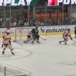 Fortan ging es hin und her. Nachdem die Starbulls bei einem über Charlie Sarault und Lukas Laub gefahrenen Konter den dritten Führungstreffer versäumten, trafen die Gäste zum 2:3. Trevor Gooch schnappte sich in der neutralen Zone die Scheibe, düpierte die Rosenheimer Abwehr mit einer feinen Finte und schloss die Einzelleistung mit einem präzisen Abschluss ins linke Eck ab (54.). Die selbstbewusst auftretenden Grün-Weißen fanden aber auch auf diesen Rückschlag eine rasche Antwort. Zerter-Gossage eroberte hinter der Grundlinie den Puck und legte zurück auf Dylan Plouffe, der sofort abzog. Sarault irritierte Keeper Langmann und Lukas Laub staubte ab – 3:3 (56.).