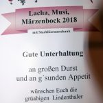 Unter dem Moto Lacha, Musi, Märzenbock 2018, feierte der Trachtenverein “Lindenthaler” Hebertsfelden sein diesjähriges Starkbierfest im Vereinheim Linden Hebertsfelden. Für Speis und Trank war bestens gesorgt und es gab neben deftigen Brotzeiten, auch süffige Biere wie das gehaltvolle Starkbier vom gräflichen Arcobräu. Die Plattlergruppe des Vereins tanzte zünftig auf und für die musikalische Unterhaltung sorgte griabig und humorvoll das Bläserensemble “Heid-gfreid’s uns-Musi” und der “Zwoagschroa”.