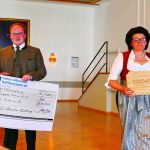 Nachdem auch das heurige Starkbierfest der Priener Blaskapelle wegen der unsicheren Corona-Lage in Präsenz abgesagt werden musste, hat sich die Vorstandschaft des Blaskapellen-Vereins entschieden, eine Ersatz-Aktion zu starten. So wurden auf Bestellung Brotzeiten und Gulasch-Suppen mitsamt Starkbier an die Freunde der Blasmusik ausgefahren. Für passende Brotzeitteller sorgte Wasti Bauer, insgesamt waren mehrere Dutzend Leute im Arbeitseinsatz. Der Erlös der Aktion wurde nunmehr beim Osterkonzert im König-Ludwig-Saal dem Priener Helferkreis für Ukraine-Flüchtlinge übergeben. Gut 900 Euro kamen zusammen, Bürgermeister Andreas Friedrich rundete mit einer privaten Spende den Betrag auf exakt 1.000 Euro auf. Musikvorstand Stefan Hackenberg und Wasti Strohmayer, der am Starkbierabend-Daheim auf dem Youtube-Kanal der Blaskapelle Moderator einer einstündigen Sendung war, übergaben den symbolischen Spendenscheck an Bürgermeister Andreas Friedrich und stellvertretend für den Helferkreis an Gemeinderätin Rosi Hell. Diese konnten informieren, dass sich der Ukraine-Helferkreis inzwischen zu einer großen und wertvollen Bewegung entwickelt hat.