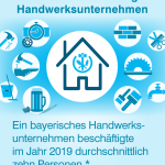 Laut Bayerischem Landesamt für Statistik gibt es in Bayern im Jahr 2019 insgesamt 101 398 selbstständige Handwerksunternehmen. Im Jahresdurchschnitt sind hier zusammen 963 850 Personen tätig. Der Vergleich zu 2018 zeigt: 0,2 Prozent weniger Unternehmen mit allerdings 0,5 Prozent mehr tätigen Personen. Zusammen erwirtschaften die Handwerksunternehmen im Freistaat in 2019 einen Umsatz von 125,37 Milliarden Euro. Das ist eine Mehrung von 3,8 Prozent gegenüber 2018. Von den 2019 im bayerischen Handwerk tätigen Personen sind 742 368 bzw. 77,0 Prozent sozialversicherungspflichtig Beschäftigte. 116 454 bzw. 12,1 Prozent gehören zur Gruppe der geringfügig entlohnten Beschäftigten. Die Anzahl sozialversicherungspflichtiger Beschäftigte steigt gegenüber 2018 um 1,5 Prozent. Geringfügig entlohnte Beschäftigte sind es um 4,6 Prozent weniger.
