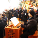 Kirchenmusiker Kristian Aleksic begleitete auch den, vom Volk, dem Chor und den Musikern gemeinsam musizierten Choral „O du fröhliche“ auf der großen Orgel auf der Empore. Einer der Höhepunkte kam auch von Sarah Emmert, Violine und Ralf Halk, Truhenorgel, die nach der Lesung virtuos den dritten Satz aus dem Konzert für Orgel und Violine in d-Moll von Antonio Vivaldi vortrugen. Mit der andächtigen Méditation aus Thaïs von Jules Massenet begleiteten sie die Gläubigen bei der Kommunion.