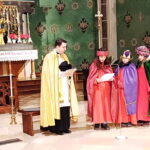 Pfarrer Konrad Roider segnete Weihrauch und Kreide und erklärte, dass das Dreikönigssingen 2025 unter dem Motto steht „Erhebt eure Stimme – Sternsingen für Kinderrechte“. Vielen Kindern in der so genannten „Dritten Welt“ gehe es nicht so gut wie den meisten Kindern in Europa, die genug zum Leben haben und eine Schule besuchen dürfen. Kinderrechte seien bei weitem noch nicht auf der ganzen Welt verankert. „Viele Gleichaltrige auf anderen Kontinenten müssen hungern“, erklärte der Pfarrer, so dass sie schon sehr früh arbeiten gehen müssten, um den Lebensunterhalt für die Familie mit zu bestreiten. Die Sternsinger sammeln also für einen sehr guten Zweck. So sprachen die Fürbitten danach vier Sternsinger abwechselnd, damit die Kinderrechte in allen Ländern künftig geachtet, geschützt und wirklich umgesetzt werden. So werden die Sternsinger in diesem Jahr wieder die Häuser mit Weihrauch segnen, singen und mit geweihter Kreide den Segensspruch C + M + B – Christus mansionem benedicat (Christus segnet das Haus) an die Haustüren schreiben.