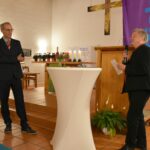 Am Schluss zählte Michael Soergel all die Menschen auf, die ihn in seiner Zeit als Diakon unterstützt haben, die Geduld mit ihm hatten und bedankte sich für den gemeinsamen Weg. In die Zukunft blickend wünschte er sich, dass alle miteinander im Gespräch bleiben, zum Beispiel mit der katholischen Kirche, wo ein Weg miteinander Probleme lösen kann, Gebäude gemeinsam genutzt werden können. Er erzählt von den vielen Netzwerken, die er aufgebaut hat, bei denen auch zusammen mit der Diakonie Lösungen gefunden werden können.
