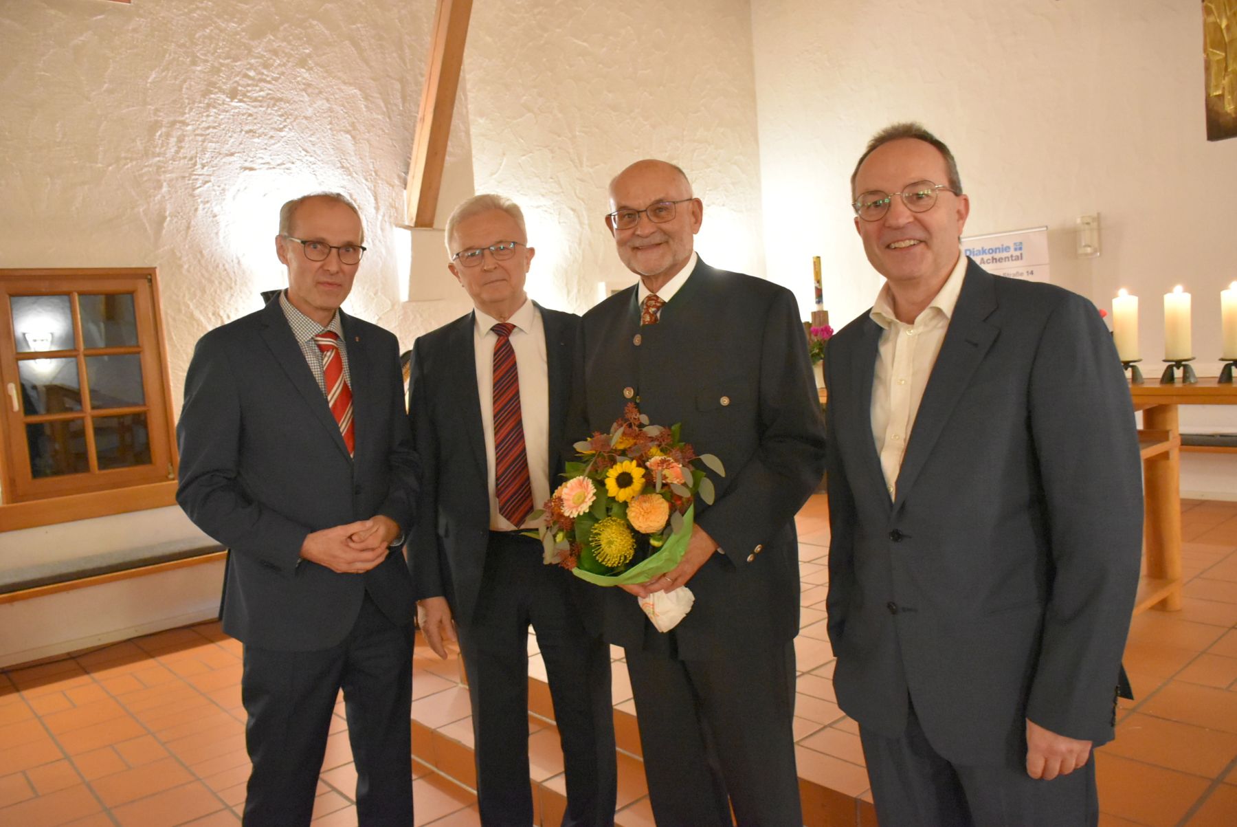 von links Diakon Michael Soergel, Vorstand Volkmar Döring, der ausgeschiedene Vorstand Max H. Nübel und der neue dritte Vorstand Jörg Herzog