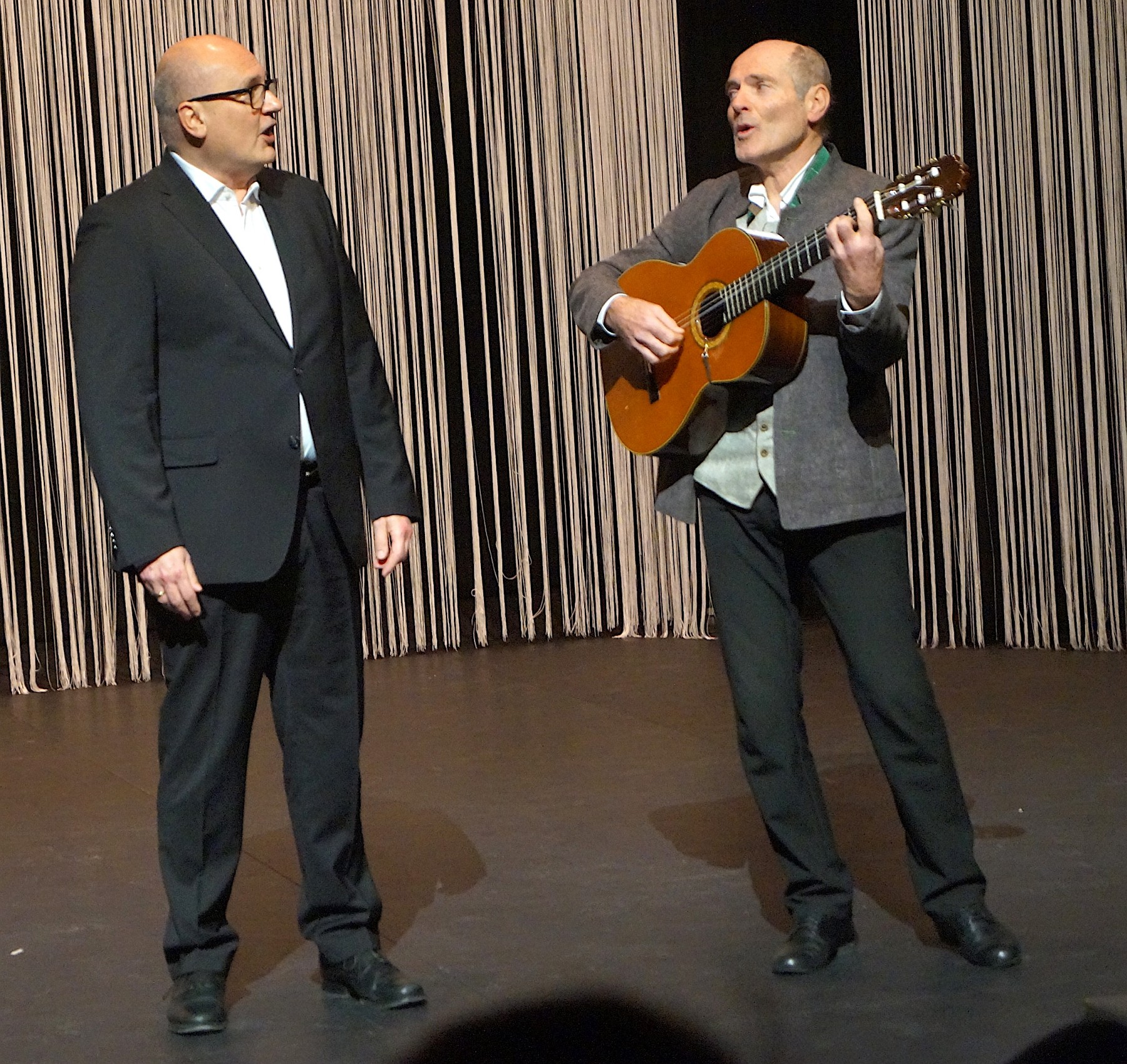 Die Sänger Josef Wörgetter (mit Gitarre) und Roman Stalla (der wegen Krankheit spontan eingesprungen ist)