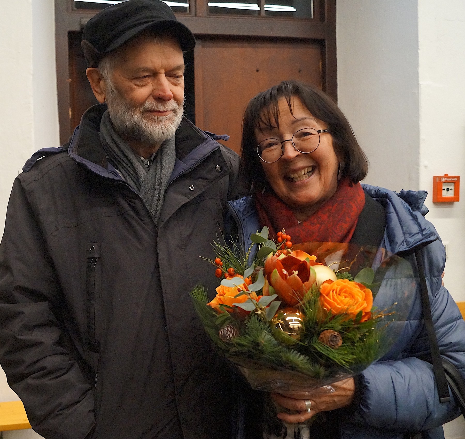 Die Autorin Andrea Sobieszek und ihr Ehemann bei der Premierenfeier in der „Alten Schmiede“ gegenüber der Festspielbühne.