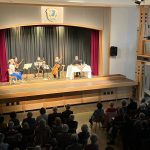 Wahrscheinlich kann man diese Schreibweise nur aus der Sicht der damaligen Zeit verstehen, als die Sprache ohnehin viel vulgärer war, als wir es heute gewohnt sind. Well zu den Briefen: „Das sind keine Schweinereien, das war eher eine Art Geheimsprache, denn zu der Zeit wäre das Verhältnis zwischen den beiden strafbar gewesen; deswegen mussten sie einen Code entwickeln, den nur sie verstanden.“ Aber trotzdem waren diese Ausführungen für manch einen der Grassauer Besucher sehr gewöhnungsbedürftig und aus heutiger Sicht zum Teil sehr schlüpfrig. Göttlich dagegen war Mozarts Musik und die ausführenden Musiker des Bäsle-Quartetts. Allesamt vom Bayerischen Staatsorchester spielten sie aus Mozarts bekannten Flötenquartetten. Andrea Ikker an der Querflöte, David Schultheiss an der Violine und Erster Konzertmeister des Bayerischen Staatsorchesters, Adrian Mustea, an der Bratsche und Yves Savary auf dem Cello (schon vom vorjährigen Konzert mit Christoph Well bekannt).