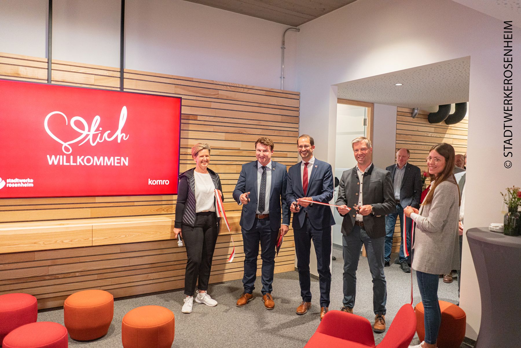 v. l. n. r.: Sindy Limmer, Leiterin Marketing SWRO – Frank Pauler, Leiter Marketing und Einspeiserechte komro – Andreas März, Oberbürgermeister – Heiko Peckmann, Geschäftsführer SWRO – Lena Maier, Marketing SWRO