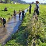 Arbeiten an der Sur/2: Hand in Hand arbeiten die jungen Studenten der Universität Weihenstephan-Triesdorf an den Ufern der Sur bei Teisendorf. Gemeinsam wollen sie im Rahmen der Lehrbaustelle die Ufer des Bachs sichern und verwenden dafür natürliche Materialien. Foto: Wasserwirtschaftsamt Traunstein