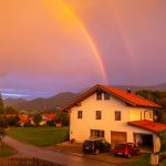 Gleichsam als sei zum Jubiläum “30 Jahre Deutsche Einheit” ein großes Feuerwerk  bestellt worden,  zeigte sich am Abend nach einem föhnigen und windigen Feiertag der Himmel über dem Samerberg von seinen schönsten Farben. Das Licht der untergehenden Sonne und der Regenbogen überzogen unter anderem den Ortsteil Fading mit einem Bild, das Maler schöner nicht hätten malen können.