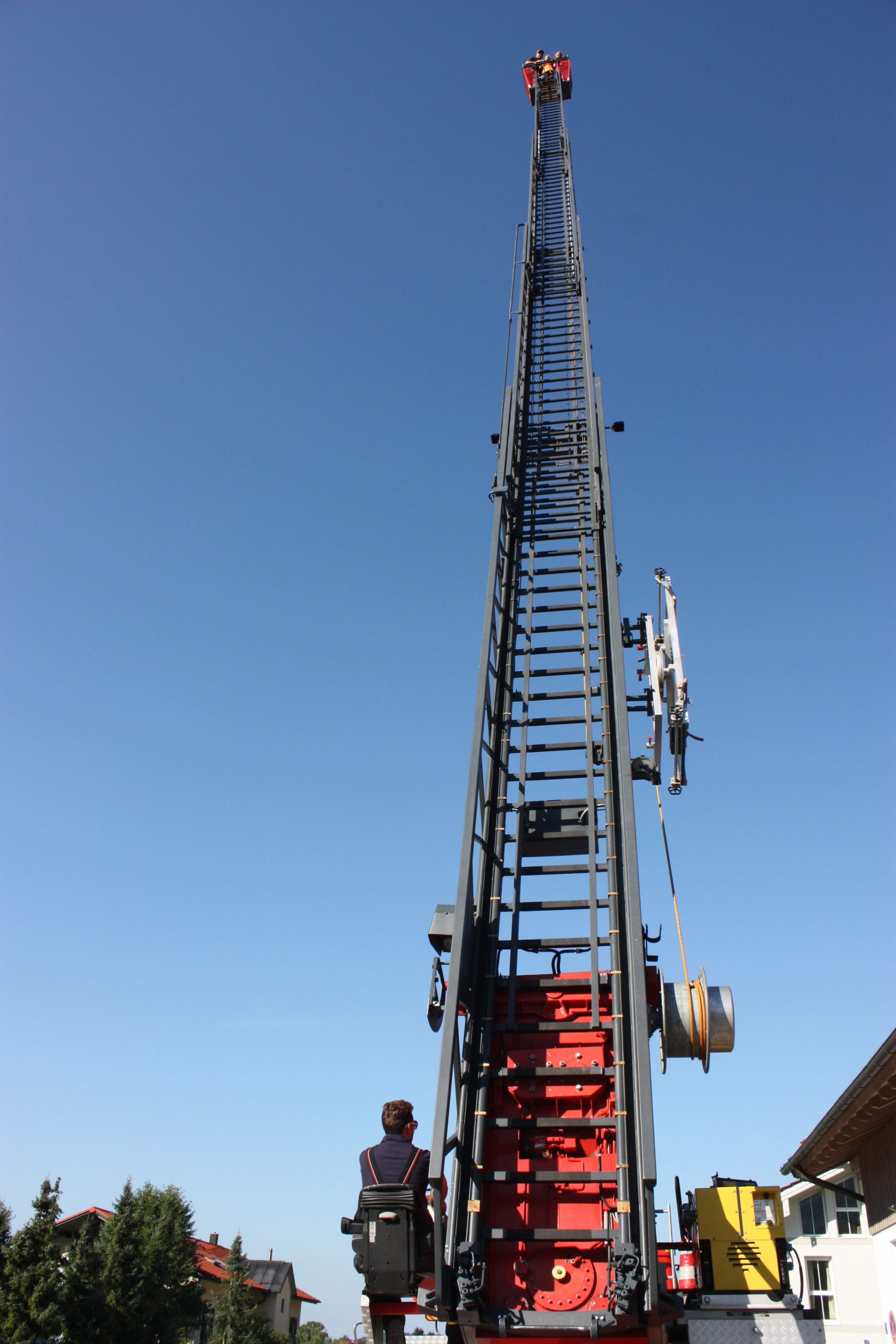 Hoch über die Aschauer Dächer brachte die Drehleiter die Besucher des Aschauer Feuerwehrjugendtages