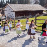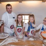 Am Freitag, 6.4., standen für die Schülerinnen und Schüler die Rohstoffe für ihr Brot im Mittelpunkt. Sie lernten während des Aktivprogramms „Spreu und Weizen“ spielerisch, wie man ein Feld zur Aussaat von Getreide vorbereitet, indem sie das Pflügen mit einem Handpflug auf dem Feld ausprobieren durften. In der Tenne des Hoderer-Hofs aus Kochel stand im Anschluss das Dreschen mit Handflegeln an, und schließlich beschäftigen sie sich mit dem Mahlen des Getreides zu Mehl in der Getreidemühle aus Fischbach. Zum Schluss des ersten Tages durften die Kinder gemeinsam mit Bäckermeister Stefan Luidl den Teig kneten und den Holzofen für das Backen am folgenden Tag vorbereiten.