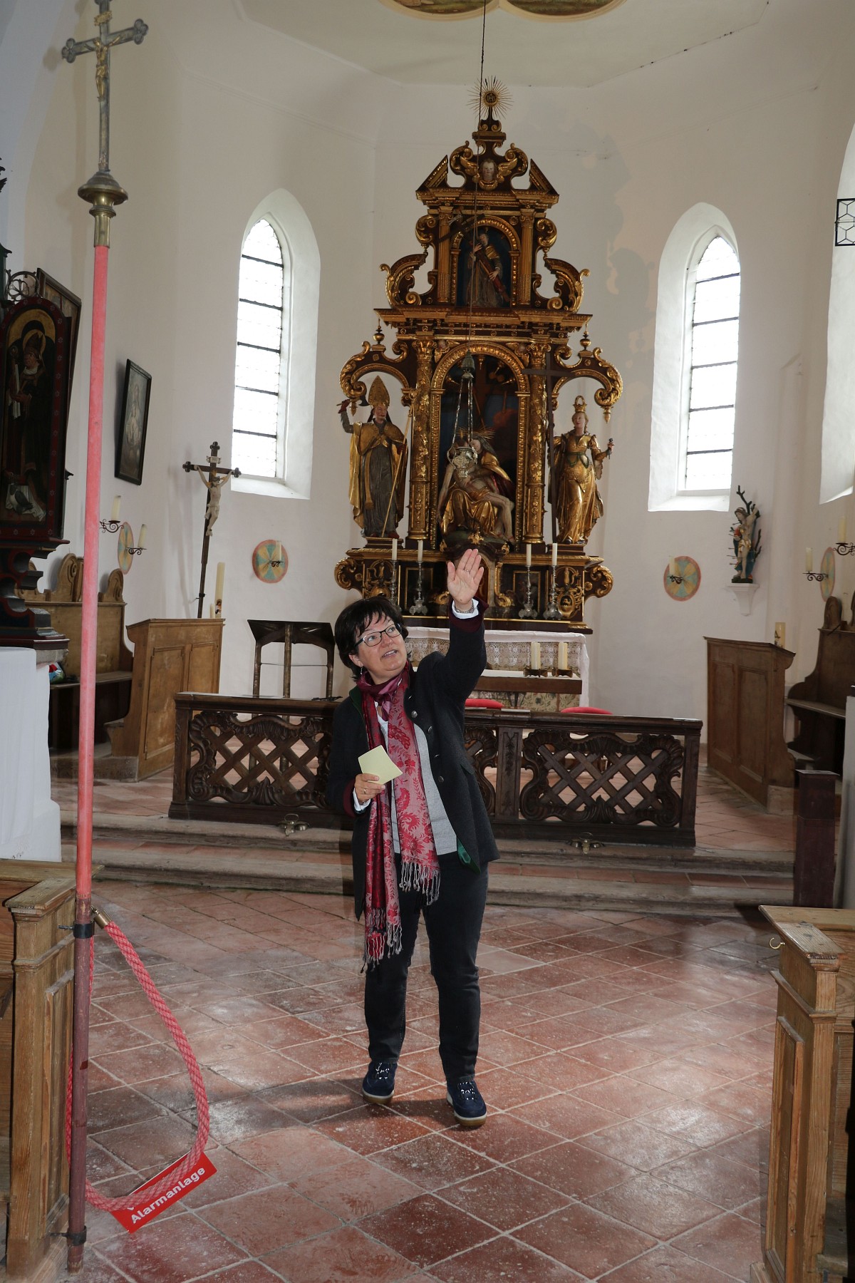 Historikerin Martina Stoib führte beim „Tag des offenen Denkmals“ – organisiert vom Aschauer Heimat und Geschichtsverein – durch die alte Wallfahrtskirche „Heilig Kreuz“ hoch über dem Priental in Höhenberg.