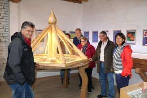 Zum „Tag des Offenen Denkmals“ präsentierte Sebastian Aringer (zweiter von rechts) der Allgemeinheit wieder einmal seine Schätze im Museum zur Frühgeschichte im Priental; ganz rechts die Vorsitzende des Aschauer Heimat und Geschichtsvereins Dr. Natascha Mehler.