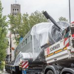 Um 11.41 Uhr landete die „Tante Ju“ wieder da, wo sie hingehört: auf der Museuminsel in München. Das legendäre Flugzeug Ju 52 ist heute ins Deutsche Museum zurückgekehrt. Der Flieger ist das größte Ausstellungsobjekt in den neuen Ausstellungen des Museums, die derzeit im südlichen Teil des Museumsgebäudes aufgebaut werden. 14 Meter lang und 2,5 Tonnen schwer ist der Rumpf der „Tante Ju“. Fast auf den Tag genau fünf Jahre stand das Flugzeug im Depot, während das Museumsgebäude saniert wurde. Heute wurde sie mit zwei Tiefladern – einer für den Rumpf, einer für die Flügel – zurück auf die Museumsinsel transportiert. Jetzt steht sie wieder in der großen Luft- und Raumfahrthalle des Deutschen Museums.