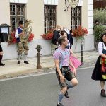 Bairisch gewandet hat sich eine tanzfreudige Gruppe im Juli aus Diessen auf den Weg nach Söllhuben gemacht, um bei der Aufzeichnung der Wirtshausmusikanten bairisch Polka zu tanzen. Spitze Hacke Stampf, Spitze Hacke Stampf. Wechselschritt Wechselschritt, Drehen Drehen … Magnus Wortsignale sind vor dem Hirzinger und der letzten Kirche, die Barockbaumeister Johann Michael Fischer (1692-1766), Bauherr des Diessener Marienmünsters seinerzeit gebaut hat, mehrfach im Regen untergegangen. Bevor die Haarprachten vollends zerstört waren, brach Regisseur Thomas Kommayer die Tanzerei auf der Söllnhuber Hauptstraße ab und zeichnete für den Rest des Abends im Wirtshaussaal auf. Da gings lustig zu. Traudi Siferlinger hat die roten Schuhe ausgezogen und übte ihre Geigenmusiken barfuß und Moderator Dominik Glöbl hat sich beim Privattraining mit Magnus Kaindl redlich um die Schrittfolgen der bairisch Polka bemüht. Die Line Dancer aus Diessen begleiten das Intro bei den Wirtshausmusikanten am Sonntag und sind dazwischen auch noch zu sehen und Magnus ist zu hören.