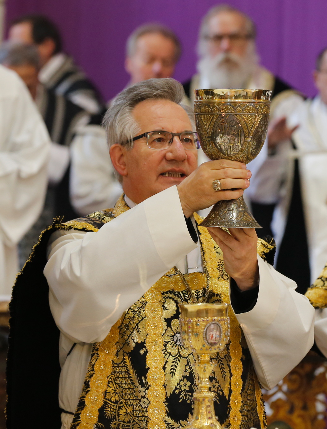 Abt Ambros mit dem Tassilo-Luitpirc-Kelch  – © Stift Kremsmünster | Foto Franz Ketter  – Abt Ambros mit dem Tassilo-Liutpirc-Kelch beim Stiftertag in Kremsmünster 2014.