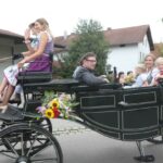 Wie bestellt war das gute und trockene Sommerwetter am Samstagnachmittag, 13. Juli, beim Wiesnauszug zum 62. Taufkirchener Traditionsvolksfest, dem zweitgrößten und schönsten im Erdinger Landkreis. Und es waren so viele – an die 2000 Teilnehmer – wie noch nie. An der Spitze war die Taufkirchener Blech, in der Zugmitte die Holzlandblaskapelle, die Buchbacher Blaskapelle sowie die Blaskapelle Veldener Blechhaufen platziert. Es folgten der prächtige Brauereiwagen sowie weitere zehn Pferdegespanne und Kutschen mit den vielen Ehrengästen.