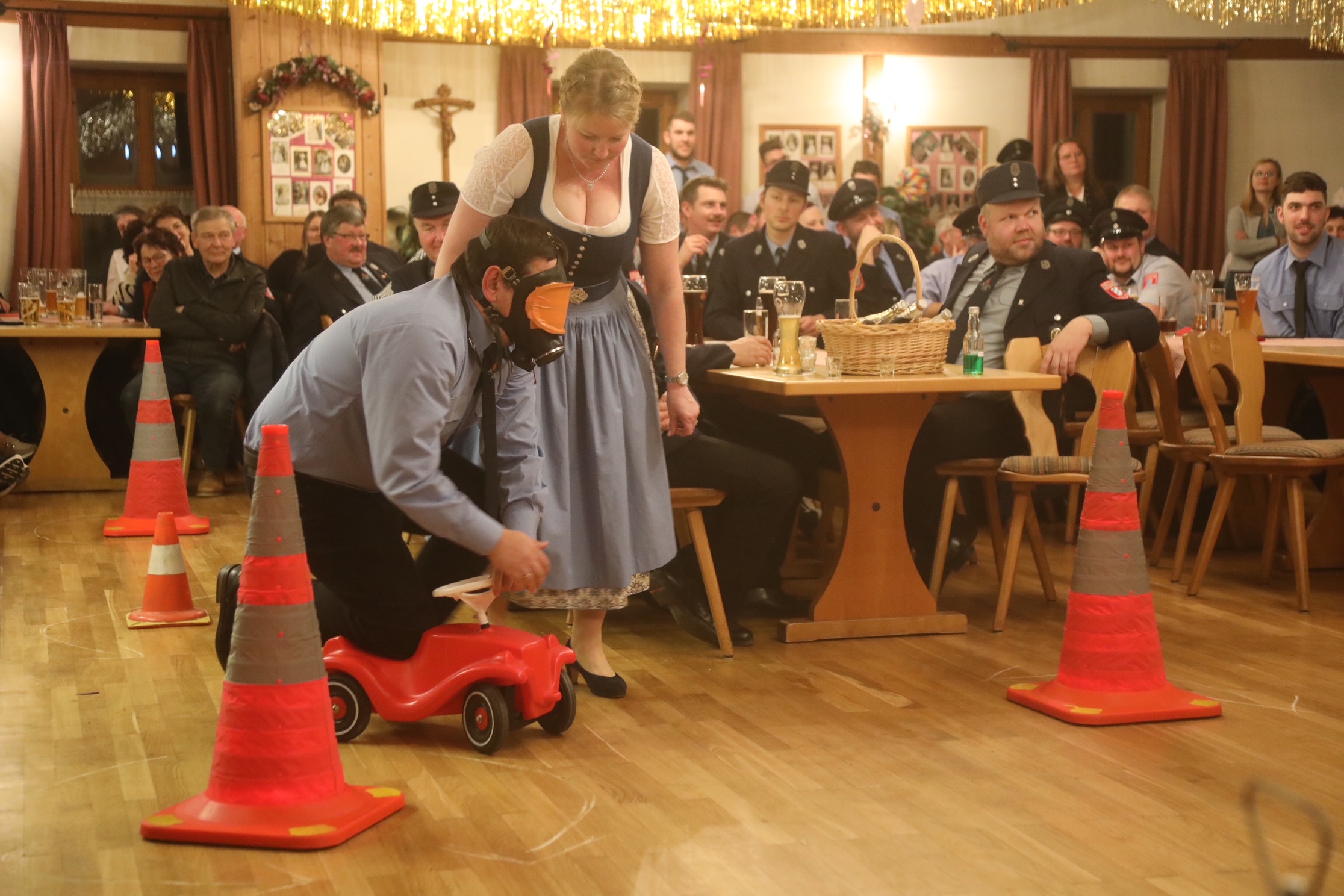 der Bobby-Car-Hindernislauf hatte es in sich: Der Maschinist musste blind unter Weisung der Festmutter den Parkour bewältigen