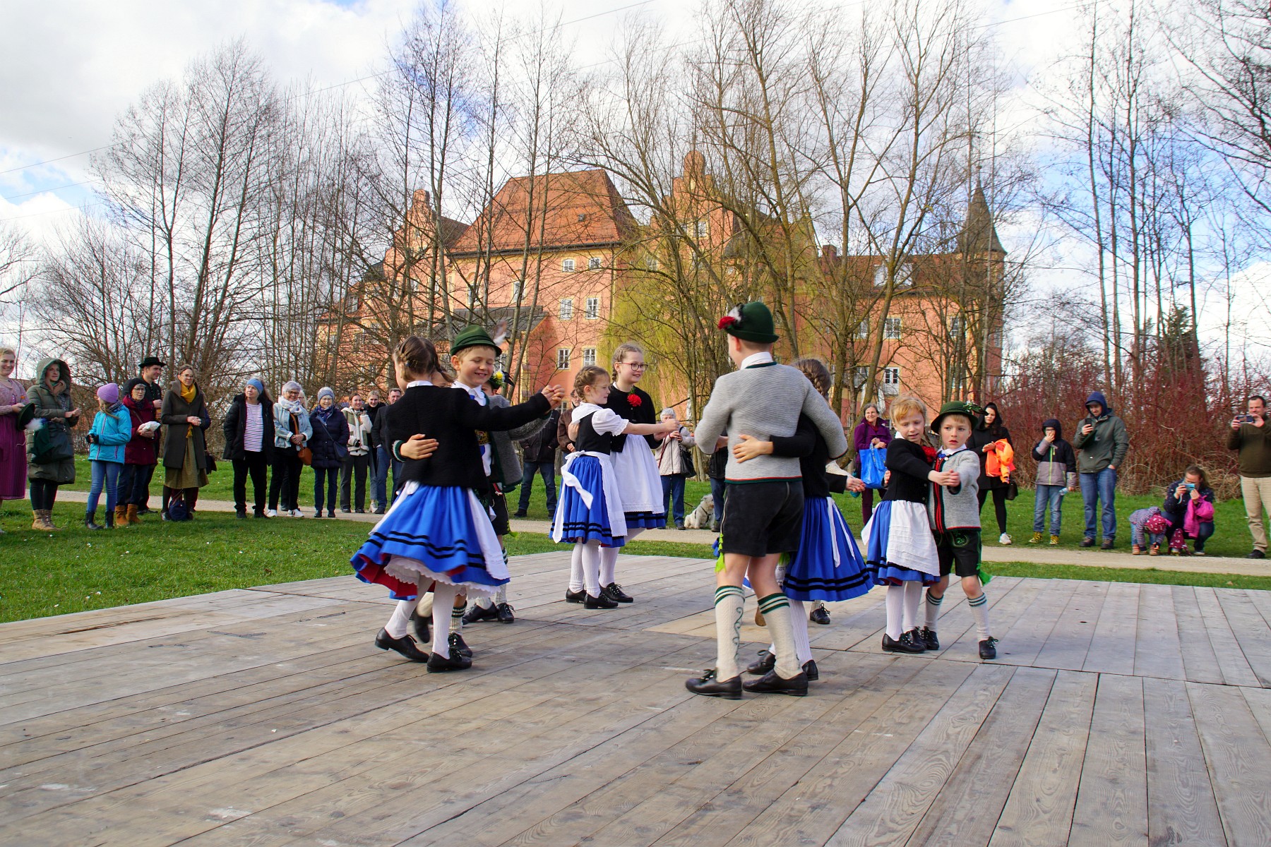 Die Mitglieder des Trachtenvereins d’Vilstaler aus Gebensbach führten am Sonntag in ihrer Miesbacher Tracht traditionelle Volkstänze und Schuablattln vor