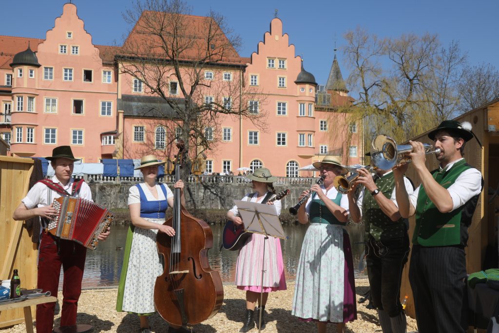Nach zweijähriger Pause fand bei idealem weißblauen Frühlingswetter und großartigen Erfolg diese Veranstaltung statt, die sich der Tradition und dem Brauchtum anschloss. Das Gelände des historischen Wasserschloss, Eigentümer der Vilsgemeinde Taufkirchen stand am Wochenende im Zentrum der Präsentation von Kunsthandwerk auf höchstem Niveau. Die Vilsgemeinde als Veranstalter legte bei der Auswahl der Aussteller auf traditionelle und hochwertige Qualität. Über 30 Aussteller und Kunsthandwerker aus den unterschiedlichsten Bereichen waren beim Taufkirchener Trachtenmarkt zu Gast auf der Schlosswiese und zeigten ihre hochwertigen Arbeiten aus den verschiedensten Bereichen des “kreativ gestaltenden” Handwerks. Bürgermeister Stefan Haberl sagte bei der Eröffnung am Samstagmittag: “Er freue sich sehr, dass in der Vilsgemeinde endlich wieder was los ist und den Besuchern aus nah und fern was anbieten könne. Der Neustart in kleinerem Rahmen auf der Schlosswiese müsse ja nicht unbedingt zum Schlechteren sein: “Manche Sachen muss man einfach neu überdenken.” “Wir freuen uns, dass nach zwei Jahren Pause der weit über die Gemeindegrenzen hinaus beliebete Markt stattfinden kann. Zum dritten Mal, nach 2018 und 2019”,dass endlich wieder das Trachtengwand aus dem Schrank kommen darf. Denn die Tracht die ja bekanntlich eine jahrhundertelange Entwicklungsweg hat. Von seinen Anfängen an erkennt man die regionale Herkunft, den Beruf oder den Familienstand. Tracht und Brauchtum verbindet die Menschen seit jeher betonte Haberl.