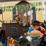Tausende Besucher aus dem Dorf, dem Landkreis und der ganzen Region säumten den Marktplatz beim diesjährigen Faschingszug in Neubeuern. Am Nachmittag schob sich der Gaudiwurm vom Münchner-Tor aus in den voll besetzten Marktplatz. Viele aufwendig dekorierte Wägen nahmen teil, um wieder Geschehnisse aus Politik und Gesellschaft auf den Arm zu nehmen. Trommelgruppen, Mottowagen, Tänzer und aufwendige Masken wechselten sich ab, sodass die Faschingsfans immer etwas zum Schauen und Hören hatten. Die bunt und kreativ verkleideten Narren verbreiteten gute Laune und beste Stimmung bei schönsten Wetterbedingungen. Die Gilden aus Rohrdorf, Prutting, Bad Endorf sowie Bernau waren mit dabei. Das Prinzenpaar mit Prinz Fabian I. und Prinzessin Barbara I. zogen in einem großen Schiff über den Marktplatz unter dem Motto „Piraten – Fluch des Inntals und der Inngewässer“, umjubelt von Tausenden Zuschauern. Dem Schiff folgte das Begleitschiff der Jungprinzen mit dem Kinderprinzenpaar Prinz Veit I. und Prinzessin Lucia I. Hier galt das Motto „Peter Pan“.
