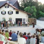 Weitere Bilder: Hötzelsperger – Horst Rankl bei den Samerberger Freilichtspielen, dessen Autor er dreimal war – Bilder 2004 von der Drehbuch-Übergabe mit Hans Sattlberger (li.) und Hans Bauer – Blick auf den Spielplatz.