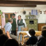 Vor und nach dem Stück erklang auf der Bühne am Samstag die Theatermusik von „K 4“ und am Sonntag von „Fast nur Blech“. Bei den Aufführungen am kommenden Wochenende sind am Freitag um 20.00 Uhr „Knöpf und Blech“, am Samstag um 20.00 Uhr die „Ramsauer 6er Musi“, am Sonntag, 14.00 Uhr die „Hinum-Herum Musi und am Sonntag um 20.00 Uhr die „Reischamer Ziachmusi“ zu hören. Die Gäste im zweimal voll besetzten Saal wurden von der Bewirtungsmannschaft des Trachtenvereins bestens bedient. Beeindruckt sind die Besucher auch von der adventlichen Dekoration des Gutsgasthofs.