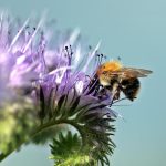 Bienenfreundliche Pflanzen wie Phacelia und Wiesen-Salbei werden gerne durch Wildbienen besucht. Links: Ackerhummel auf Phacelia (Foto: privat). Rechts: Holzbiene im Anflug auf einen Wiesensalbei.
