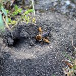 Einige Wildbienen, wie die Hosenbiene legen ihre Nester in lockere Erde oder Sand.