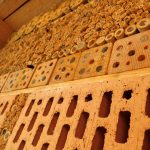 Links: Insektenhotels sind durch Wildbienen gern genutzte Nistplätze (Foto: privat). Rechts: Eine Maurerbiene findet Unterschlupf in einem Insektenhotel.