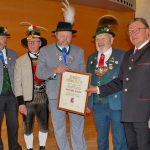 Mit dem Wunsch, weiterhin die Freundschaft und Zusammenarbeit der beiden Landesverbände der Trachtler “herent und drent” zu fördern, und dem Ausspruch: “Gott segne Tirol und seine Trachtler” bedankte sich Weinzierl für die Ehrung, die er im Beisein von Inngau-Gauvorstand Schorsch Schinnagl und Bayerns Landesvorsitzendem Max Bertl entgegennahm.